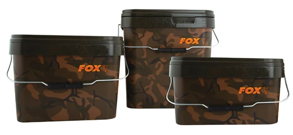 De handige buckets van Fox zijn ideaal voor het bewaren van boilies, particles en lokvoer. Dankzij een afsluitbare deksel kan je eenvoudig het voer vrij houden van ongedierte en dankzij het handvat kan je ook gemakkelijk lopen met de emmer. De bucket is voorzien van mooie camo kleuren. Het vierkante ontwerp is veel gemakkelijk voor transport op een barrow dan een traditionele ronde emmer. Onmisbaar voor iedere karpervisser!