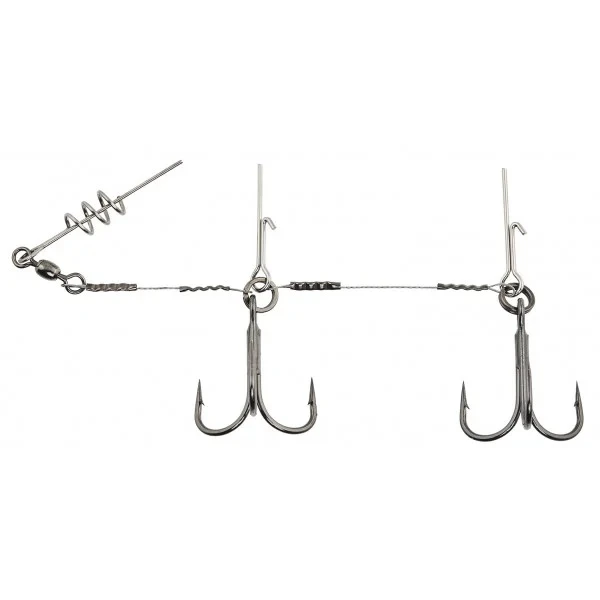 Het Lucky John Stinger System is een ideaal stinger systeem, dat gemakkelijk en nauwkeurig op softbaits te monteren is. De stinger heeft een kurkschoef die voor in de shad gemonteerd wordt en een pin boven de dreg voor gemakkelijk montage. Door deze extra pin zijn alle 3 de haakpunten vrij, wat de inhaking bevordert. Beschikbaar in meerdere maten.