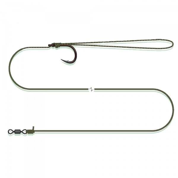 Op het eerste gezicht lijkt deze onderlijn zeer simpel en dat is het ook, echter is het gemaakt met Madcat zijn Skin Line. Deze lijn zorgt ervoor dat je de onderlijn gemakkelijk ver kan werpen zonder dat het in de knoop raakt! Ook biedt het een uitstekende duurzaamheid, gevoeligheid en camouflage. Een zeer effectieve rig voor de visserij op meerval!