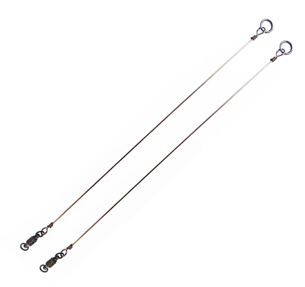 Deze Wire Beat Leaders van Musky Innovations zijn ontworpen om optimale actie te krijgen van kleine tot middelgrote jerk- en swimbaits bij het vissen op snoek en andere roofvis. Omdat de leader niet flexibel is kan je er prima met grote pluggen mee vissen. De stangetjes worden met een splitring aan het kunstaas bevestigd en laten dit beter volgen zonder verstrikt te raken in de hoofdlijn. Gemaakt met enkelstrengs edelstaal, een kogellagerwartel en een solide gelaste splitring. Verkrijgbaar in meerdere sterktes.